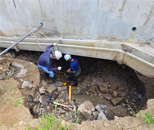 누수는 1983년 부설된 직경 20㎝ 상수도관이 노후화되면서 지름 10㎝가량이 파열돼 발생한 것으로 파악됐다.