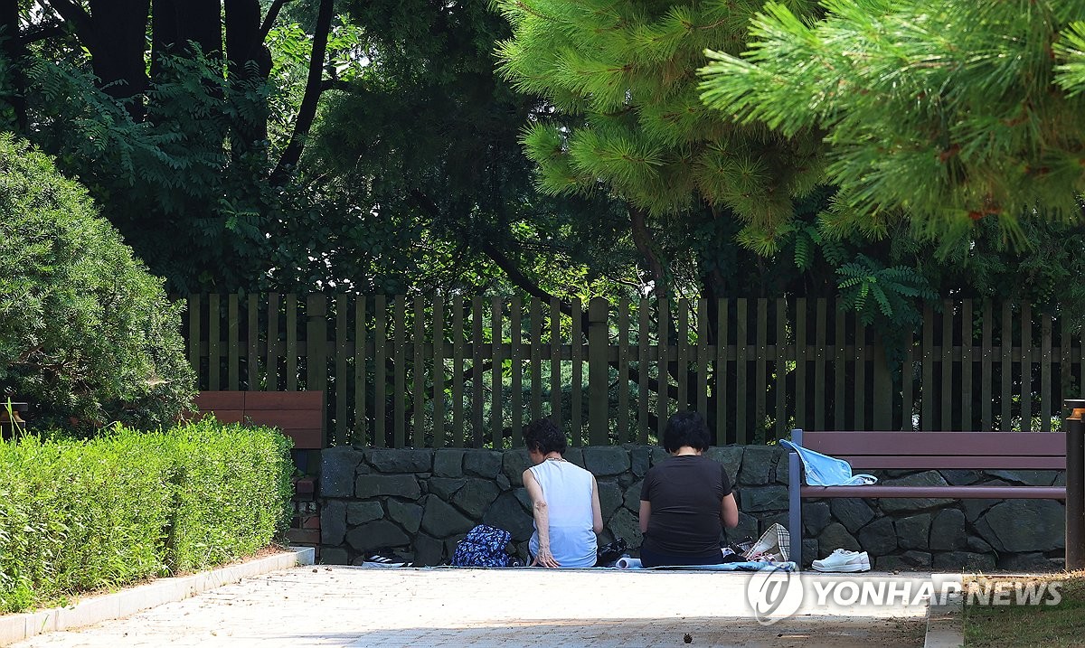 (인천=연합뉴스) 임순석 기자 = 전국 대부분 지역에 폭염경보가 내려진 25일 인천 중구 자유공원에서 시민들이 나무 그늘 아래 더위를 식히고 있다. 2025.7.25 soonseok02@yna.co.kr