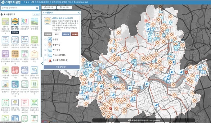 이 지도에는 이달 26일 기준으로 서울시와 25개 자치구가 운영하는 총 239개소의 물놀이 시설 정보가 반영돼 있다.