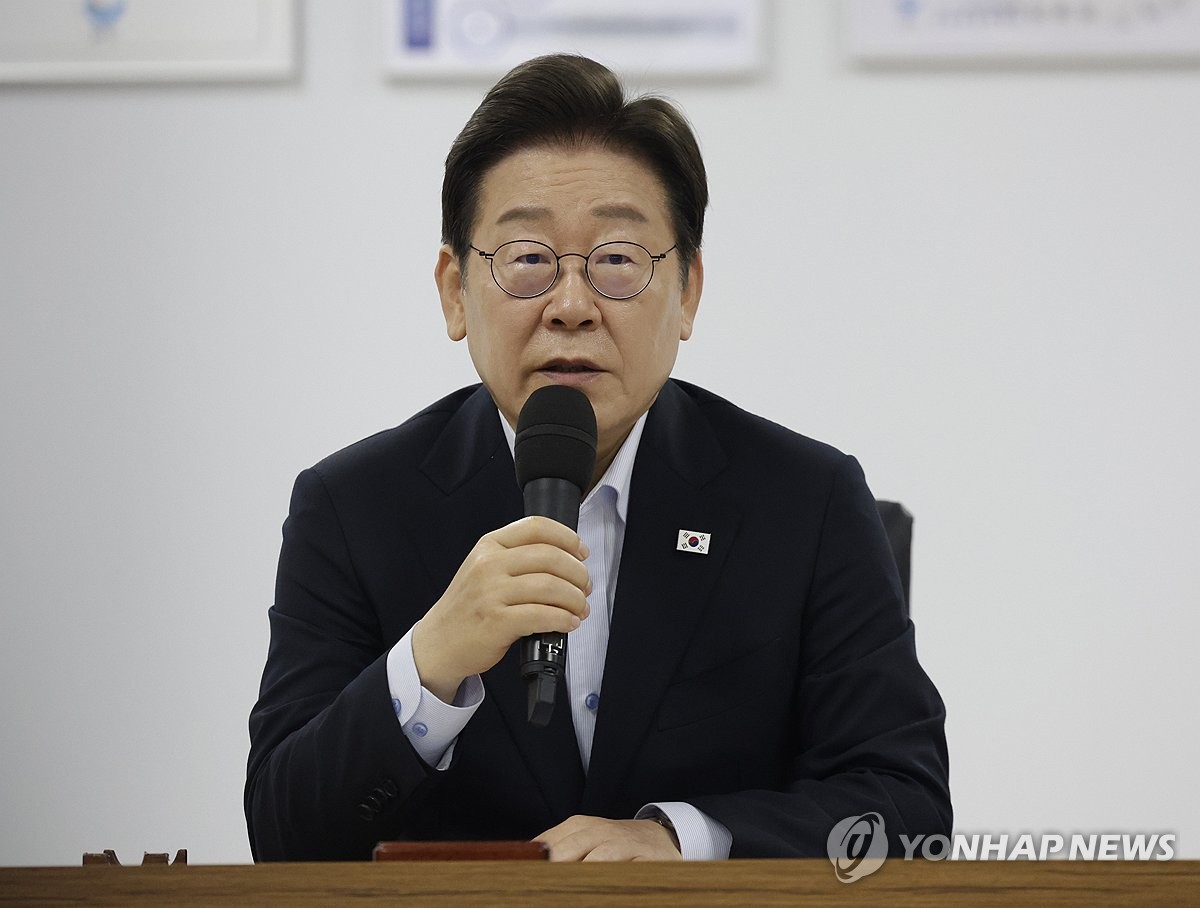 (시흥=연합뉴스) 홍해인 기자 = 이재명 대통령이 25일 경기 시흥시 SPC 삼립 시화공장에서 열린 산업재해 근절 현장 노사간담회에서 발언하고 있다. 2025.7.25 [대통령실통신사진기자단] hihong@yna.co.kr