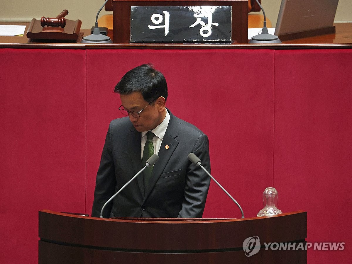 (서울=연합뉴스) 류영석 기자 = 최상목 경제부총리 겸 기획재정부 장관이 1일 국회에서 본회의 표결 절차를 마친 뒤 회의장를 떠나고 있다. 2025.5.1 ondol@yna.co.kr