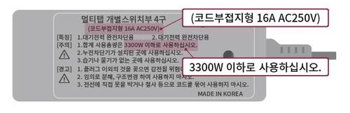 플러그 개수나 케이블(전선) 길이만 보고 구매하는 경우가 많지만 허용 전력 용랑을 확인해야 한다.