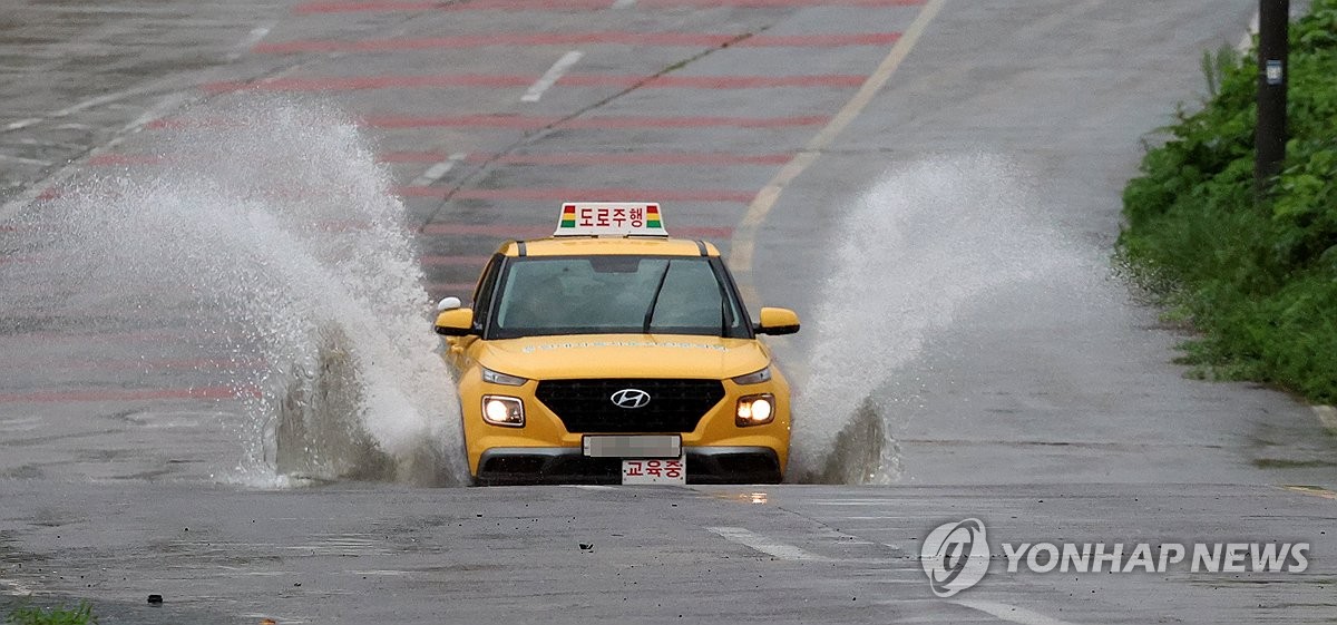 (제주=연합뉴스) 박지호 기자 = 호우특보가 내려진 11일 오전 제주시의 한 도로에 비가 쏟아지고 있다. 2025.8.11 jihopark@yna.co.kr