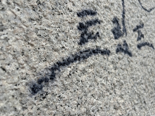 현장에서 본 낙서는 생각보다 큰 편이었다. '국'이라고 적힌 글자는 성인 손바닥만 한 크기였고, 시간이 지나면서 석재 표면으로 일부가 스며든 모습이었다.