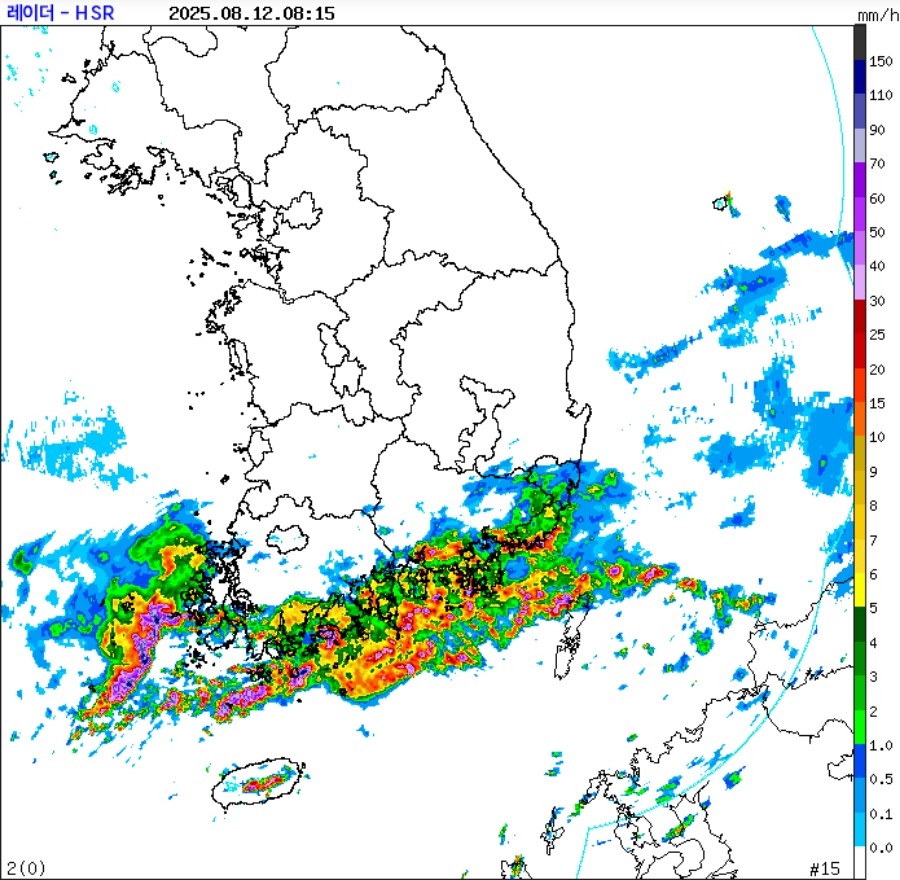 12일 오전 8시 15분 레이더 영상. [기상청 제공. 재판매 및 DB 금지]