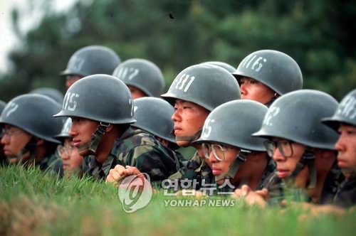 구릿빚 얼굴의 논산훈련소 훈련병들. <연합뉴스. 무단전재-재배포 금지.>