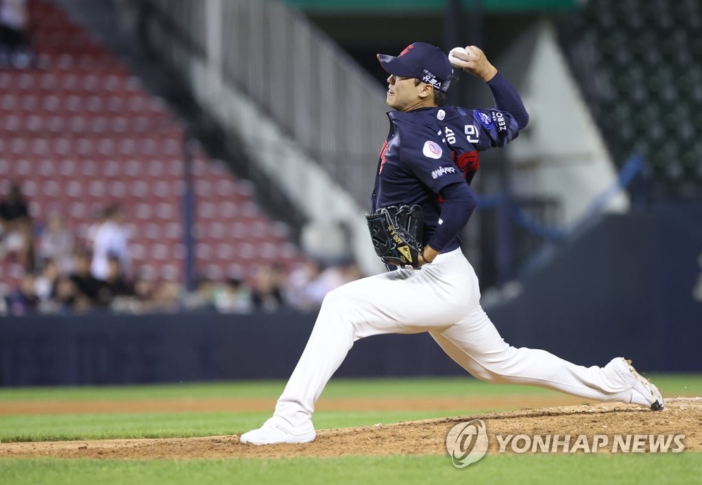 (서울=연합뉴스) 김성민 기자 = 26일 오후 서울 잠실야구장에서 열린 2023 프로야구 롯데 자이언츠와 두산 베어스의 경기. 6회말 롯데 구승민이 역투하고 있다. 2023.7.26 ksm7976@yna.co.kr