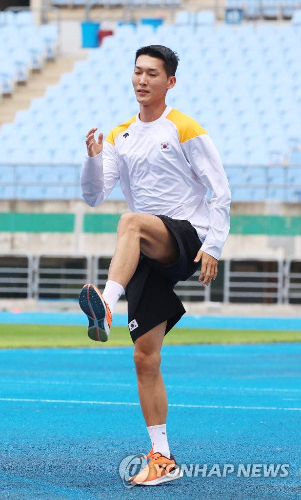 (인천=연합뉴스) 임순석 기자 = 우상혁이 2일 오후 인천 문학경기장에서 세계육상선수권대회 출전을 앞두고 취재진과 인터뷰하고 있다. 우상혁은 19일 개막하는 2023 부다페스트 세계육상선수권대회에 참가하기 위해 4일 유럽으로 떠나 '현지 적응 훈련'에 나선다. 2023.8.2 soonseok02@yna.co.kr