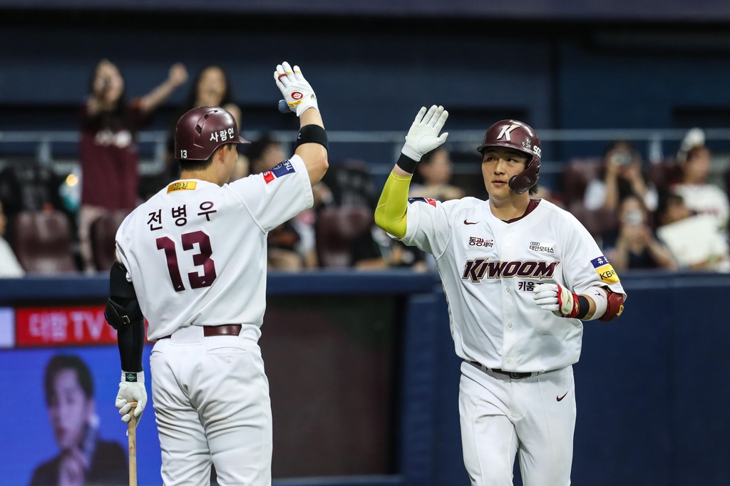 (서울=연합뉴스) 이대호 기자 = 프로야구 최하위 키움 히어로즈가 마운드에 복귀한 에이스 안우진의 역투와 신인 포수 김동헌의 쐐기 홈런을 앞세워 이틀 연속 승리했다.