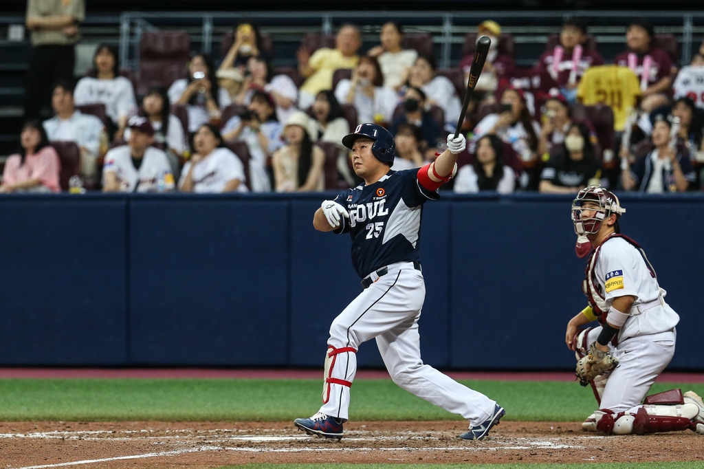 양의지(36·두산)는 22일 서울 고척스카이돔에서 열린 키움 히어로즈와 방문 경기에 8회 초 1사 주자 없는 가운데 대타로 등장해 솔로 아치를 그렸다.