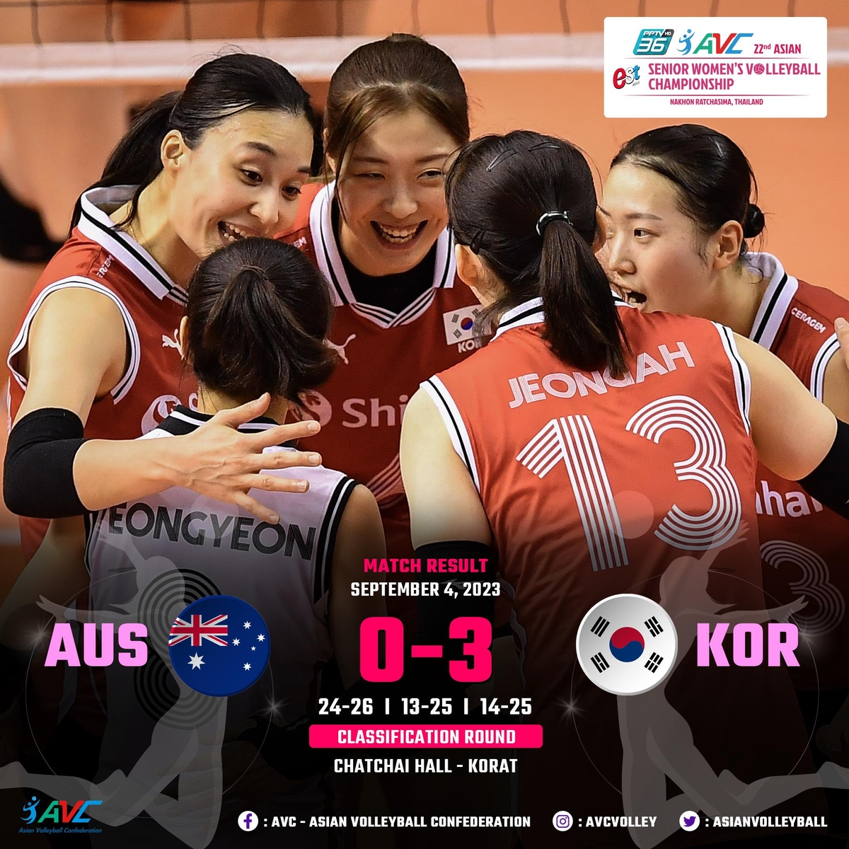 세사르 에르난데스 곤살레스 감독이 이끄는 한국 대표팀은 4일 태국 나콘라차시마에서 열린 2023 아시아배구선수권 8강 라운드 E조 호주전에서 세트스코어 3-0(26-24 25-13 25-14)으로 이겼다.