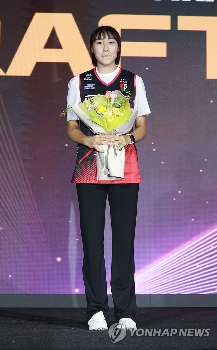 (서울=연합뉴스) 한종찬 기자 = 10일 서울 강서구 메이필드호텔에서 열린 프로배구 2023-2024 KOVO 여자 신인선수 드래프트에서 1라운드 2순위로 지명을 받은 곽선옥 선수가 기념촬영하고 있다. 2023.9.10 saba@yna.co.kr