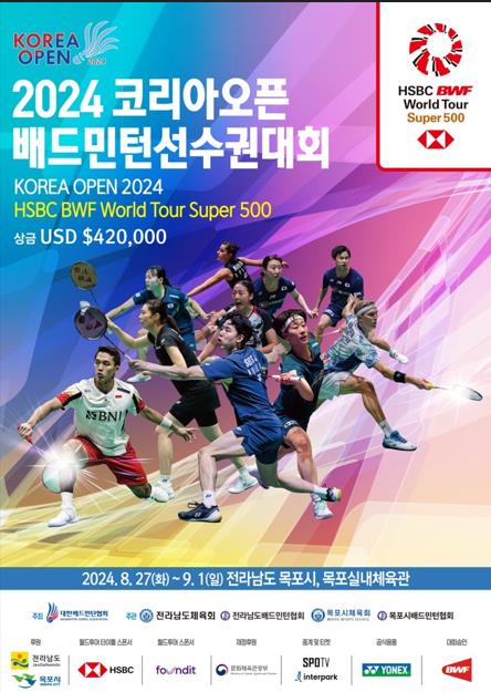 (목포=연합뉴스) 조근영 기자 = '2024 코리아오픈 배드민턴 선수권대회'가 오는 27일부터 9월 1일까지 전남 목포 실내체육관에서 열린다.