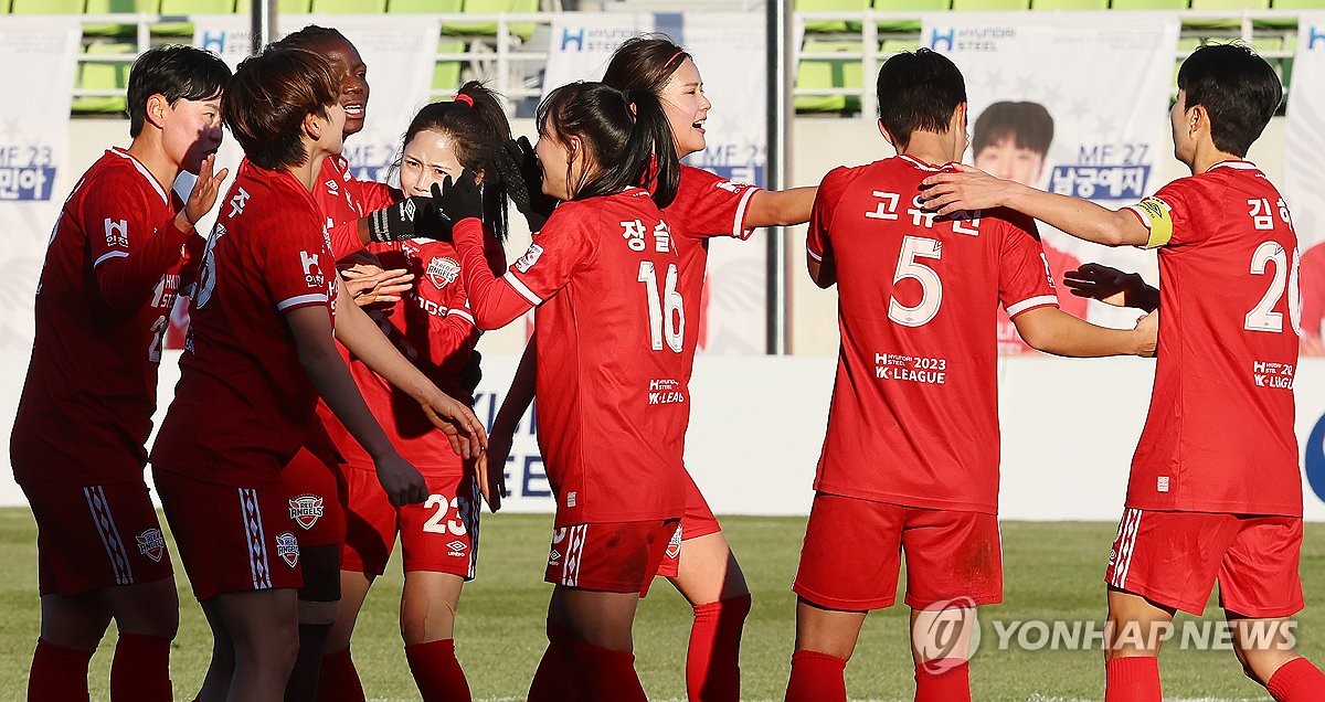 (인천=연합뉴스) 임순석 기자 = 25일 오후 인천 남동경기장에서 열린 여자축구 2023 WK리그 챔피언결정전 2차전 인천 현대제철과 수원FC 경기, 6-2로 승리해 11년 연속 리그 우승을 거둔 현대제철 선수들이 기뻐하고 있다. 2023.11.25 soonseok02@yna.co.kr