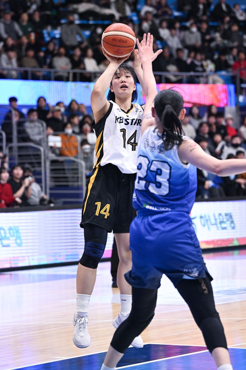 2연패에서 탈출한 KB는 5위(8승 15패)를 유지했으나 4위(9승 15패) 신한은행과 격차를 0.5승으로 좁혀 '봄 농구' 진출 가능성을 키웠다.