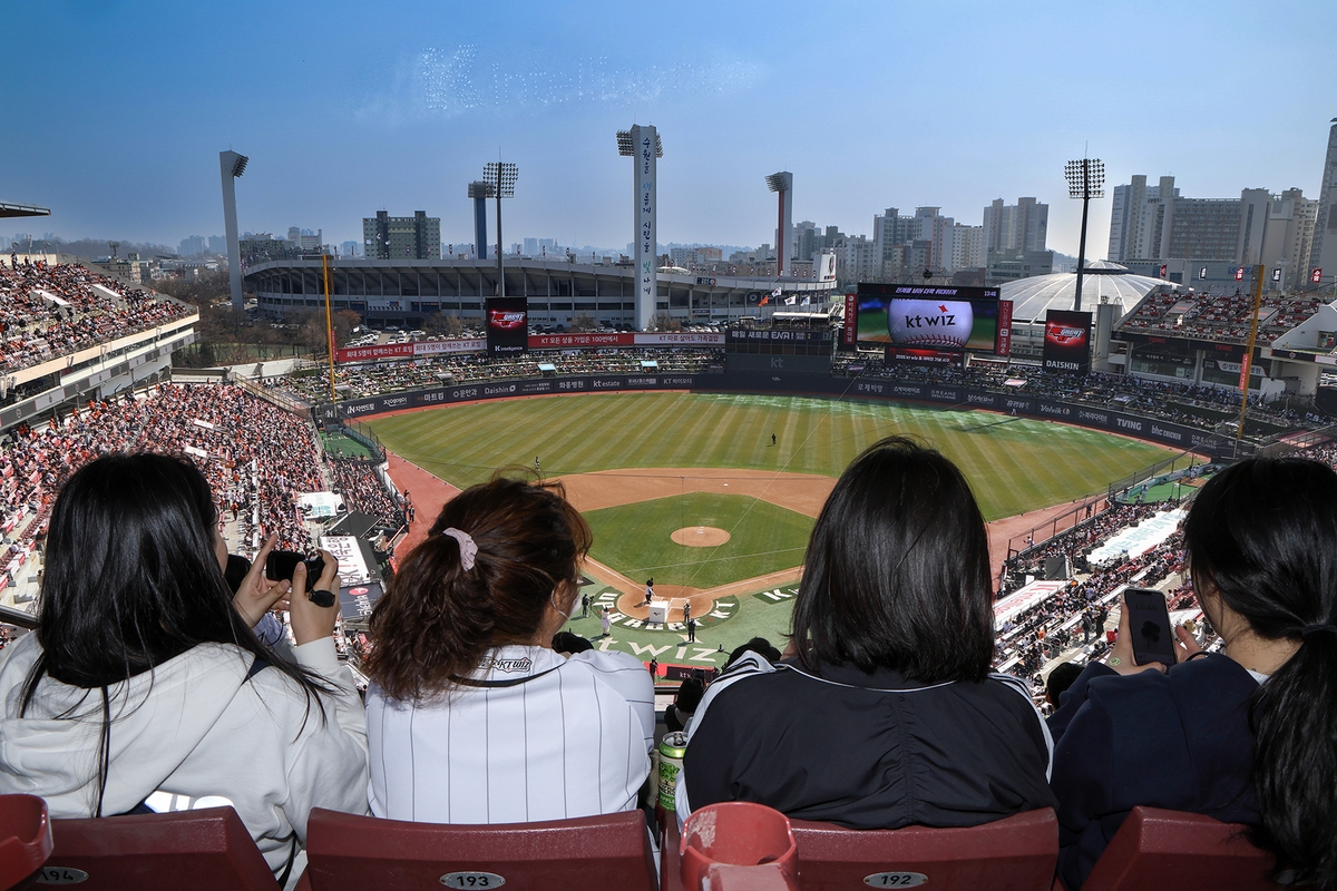KT는 전날 2025 KBO리그 정규시즌 개막 전 경기에서 350대의 드론을 사용한 K 인텔리전스 세리머니를 선보이기도 했다.