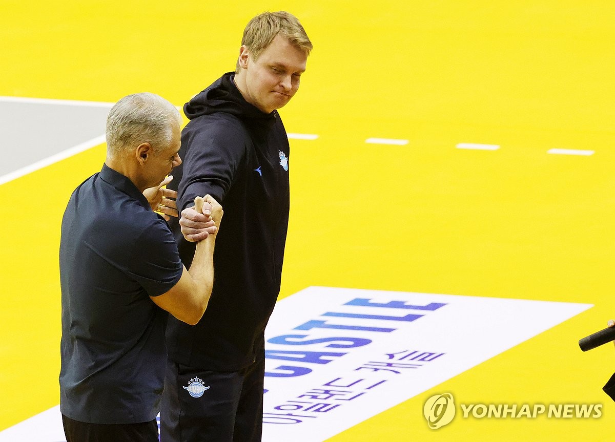(의정부=연합뉴스) 하남직 기자 = 토미 틸리카이넨 대한항공 감독은 "사령탑 부임 후 챔피언결정전에서는 모두 승리했다"는 덕담에 "아주 중요한 점을 짚었다"라고 크게 웃었다.