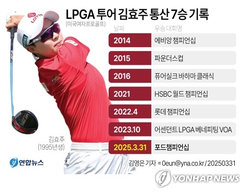 (서울=연합뉴스) 권훈 기자 = 김효주가 미국여자프로골프(LPGA) 투어에서 1년 5개월의 침묵을 깨고 통산 7번째 우승 트로피를 안았다.