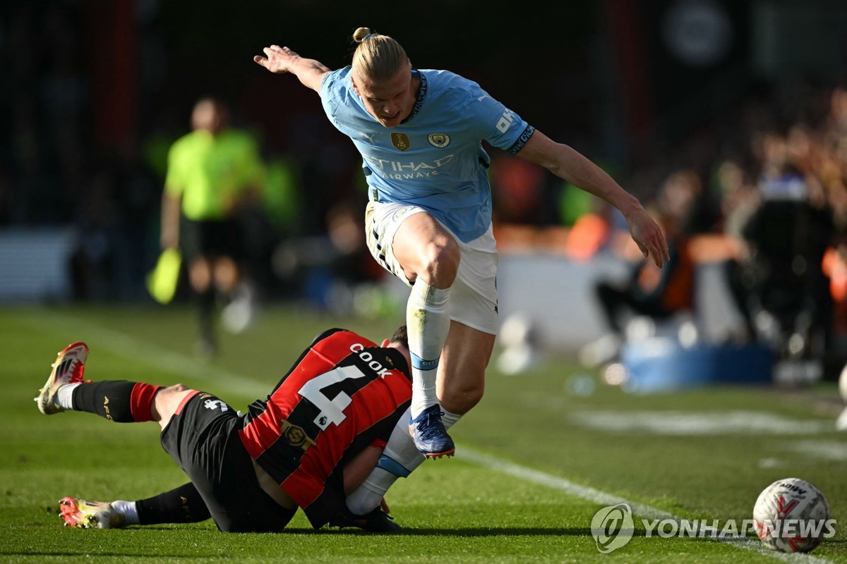 홀란은 지난달 31일 영국 본머스의 바이탤러티 스타디움에서 열린 본머스(1부)와 2024-2025 FA컵 8강전에서 후반 12분께 본머스의 오른쪽 풀백 루이스 쿡과 볼을 다투다 왼쪽 발목이 꺾이며 쓰러졌다.