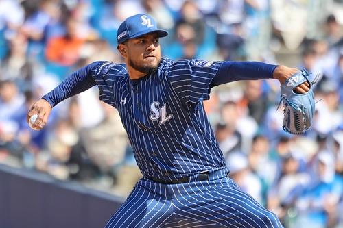 삼성 선발 데니 레예스는 7회까지 한화 타선을 퍼펙트로 꽁꽁 묶고 시즌 2승째를 거뒀다.