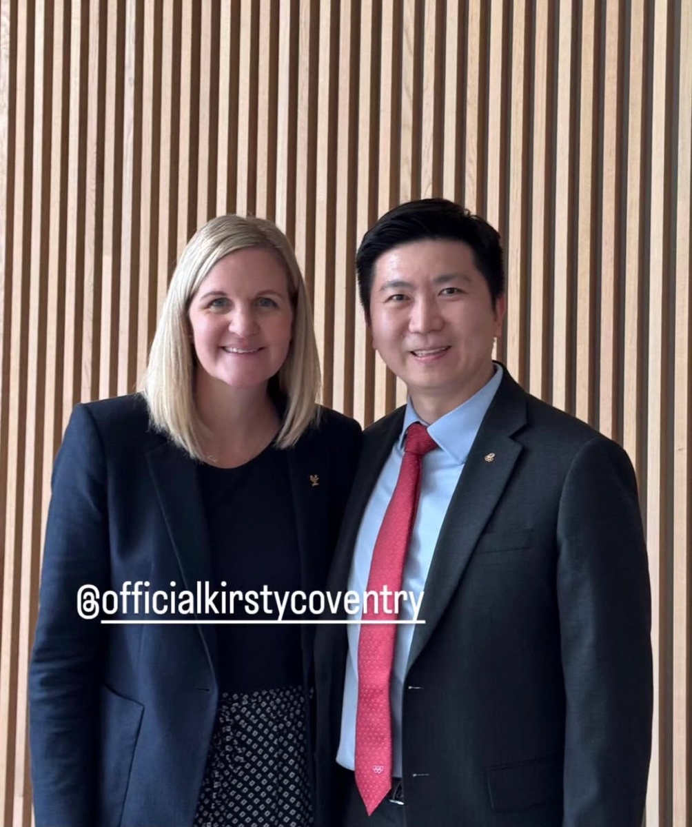 유 회장은 또 IOC 선수위원으로 함께 활동했던 코번트리 당선인과도 만나 인사했다.