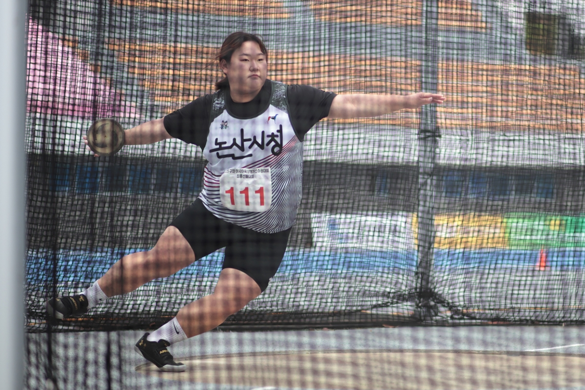여자 원반던지기에서는 신유진(논산시청)이 56m98을 던져 50m63의 정예림(과천시청)을 꺾고 우승했다.