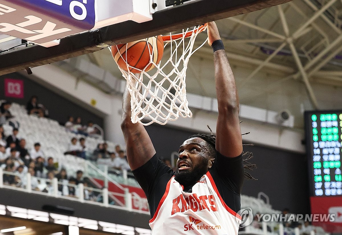 (수원=연합뉴스) 홍기원 기자 = 29일 경기도 수원KT소닉붐아레나에서 열린 프로농구 4강 플레이오프 4차전 수원 KT 소닉붐과 서울 SK 나이츠의 경기. SK 워니가 덩크슛을 하고 있다. 2025.4.29 xanadu@yna.co.kr