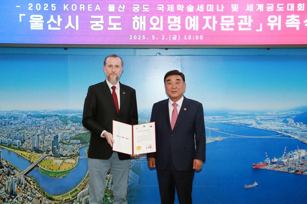 (울산=연합뉴스) 허광무 기자 = 울산시는 2일 자페르 메틴 아테스 튀르키예 전통활쏘기연맹 대외협력위원을 '궁도 해외명예자문관'으로 위촉했다.