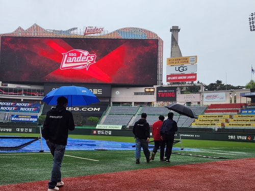 (인천·서울=연합뉴스) 하남직 이대호 기자 = 9일 오후 6시 30분에 열릴 예정이던 프로야구 KIA 타이거즈-SSG 랜더스(인천 SSG랜더스필드), NC 다이노스-두산 베어스(서울 잠실구장), 롯데 자이언츠-kt wiz(수원 케이티위즈파크), LG 트윈스-삼성 라이온즈(대구 삼성라이온즈파크) 경기가 비 때문에 취소됐다.