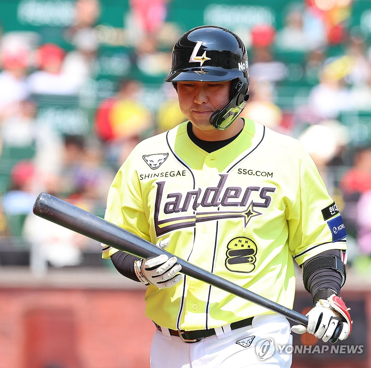 (인천=연합뉴스) 임순석 기자 = 11일 인천 SSG랜더스필드에서 열린 프로야구 2025 신한 SOL 뱅크 KBO리그 KIA 타이거즈와 SSG 랜더스의 더블헤더 1차전. 3회 말 무사 2루에서 SSG 최정이 삼진 아웃당한 뒤 아쉬워하며 더그아웃으로 향하고 있다. 2025.5.11 soonseok02@yna.co.kr