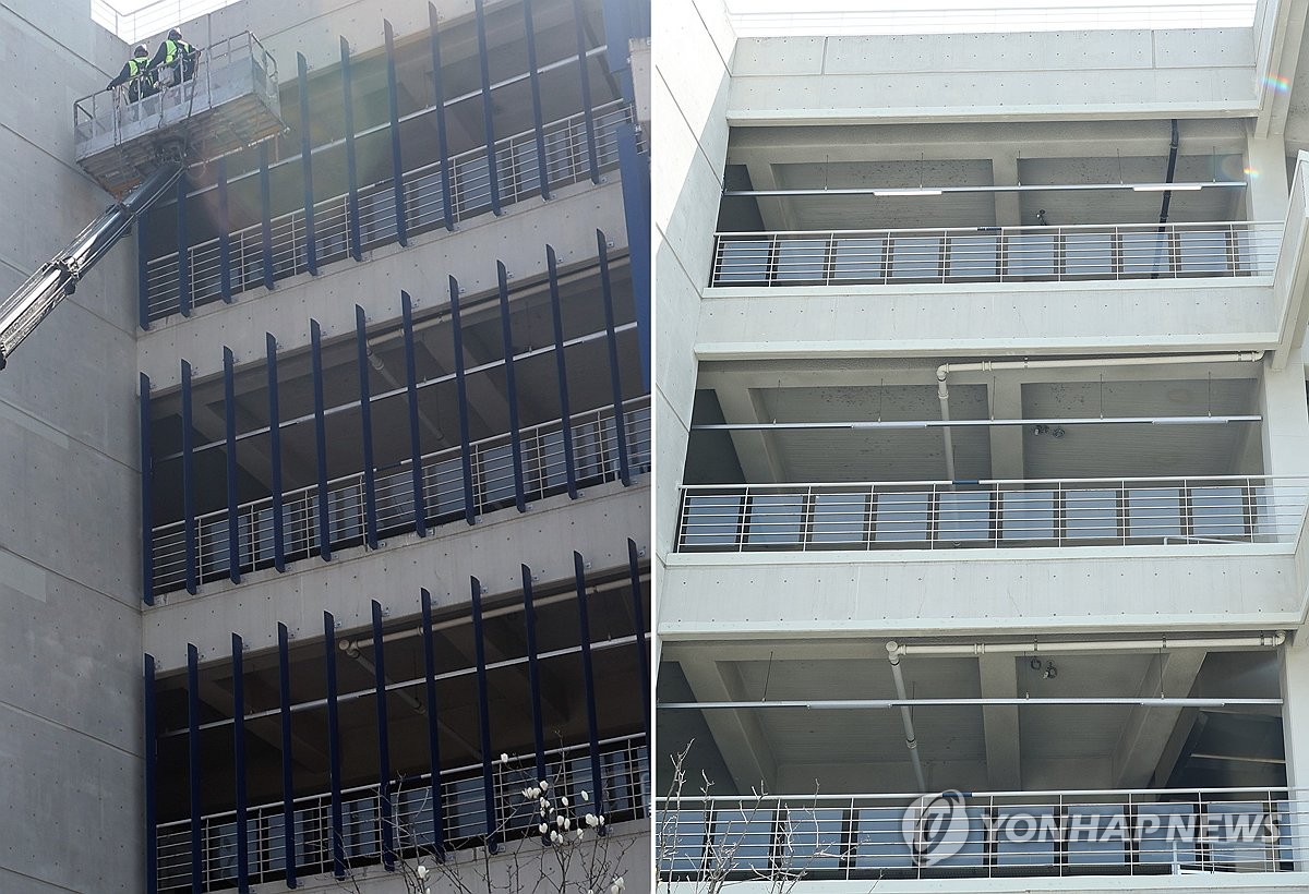 왼쪽 사진은 지난 1일 루버 안전 점검을 하는 모습. 2025.4.29 image@yna.co.kr