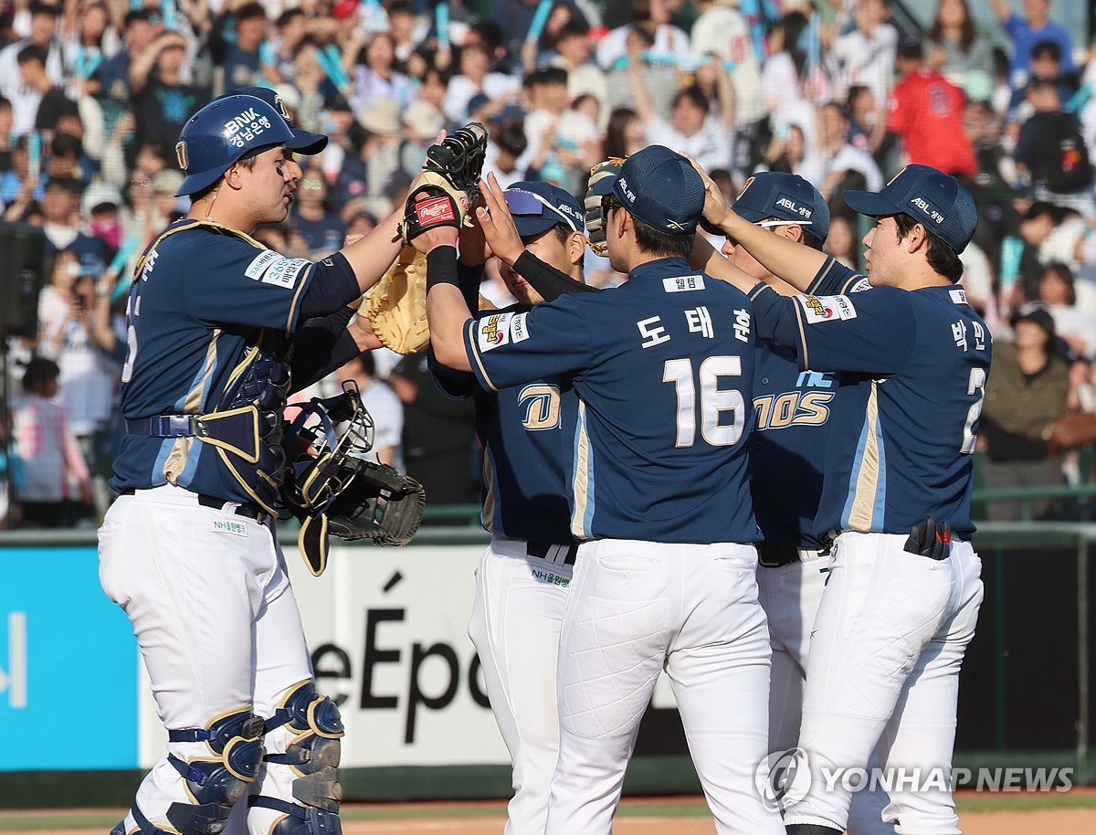 NC 선수들이 9대6으로 롯데를 누르고 승리의 기쁨을 나누고 있다. 2025.5.4 sbkang@yna.co.kr