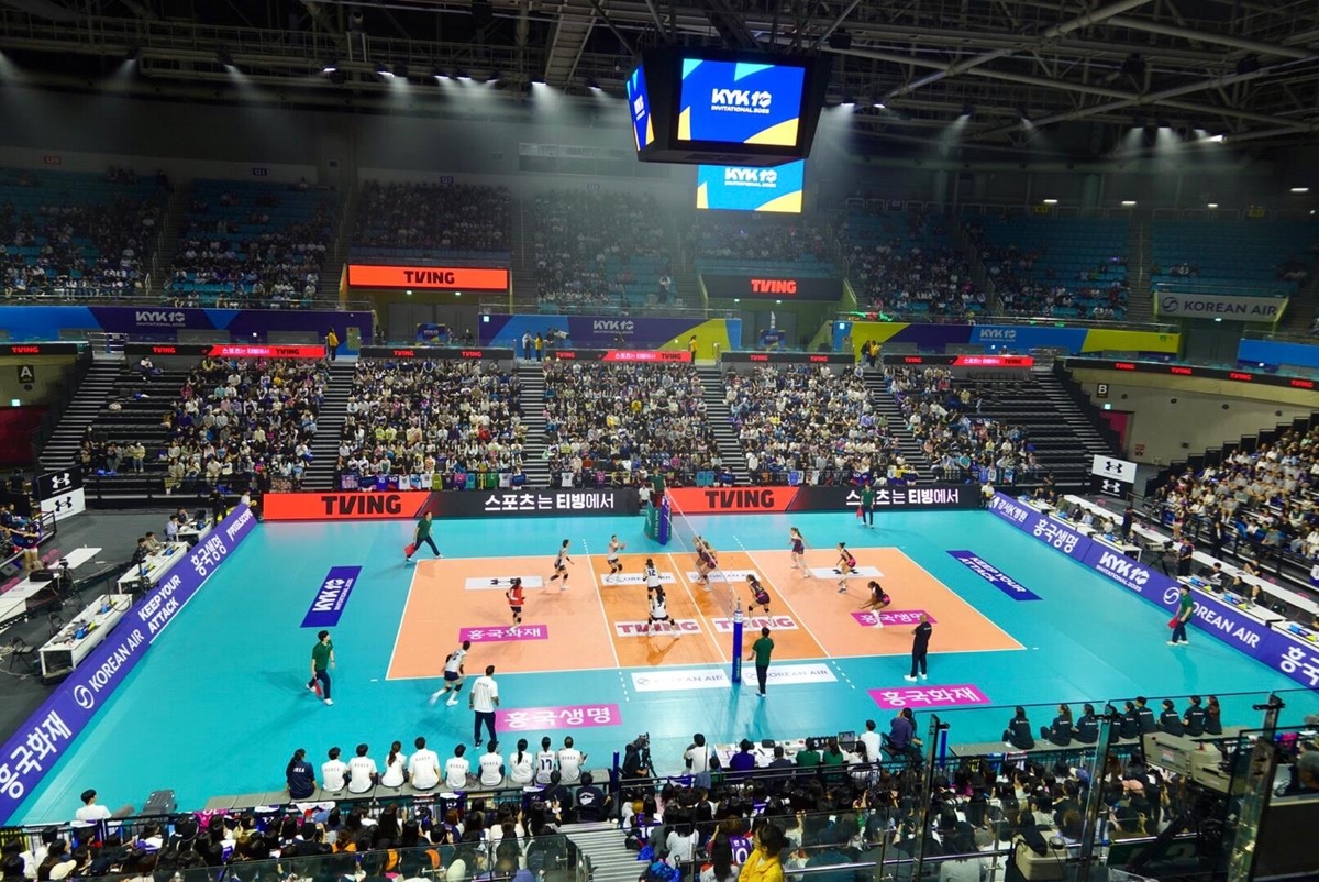 (인천=연합뉴스) 이동칠 기자= 17일 인천 삼산월드체육관에서 열린 여자배구 세계올스팀과 한국 여자대표팀간 경기에 관중들이 관전하고 있다. 2025.5.17.