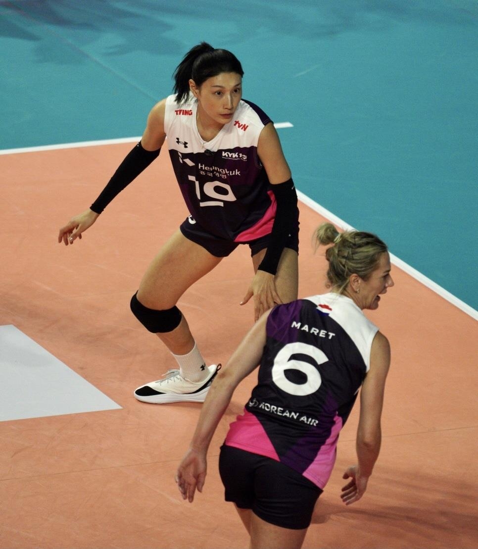 김연경은 17일 인천 삼산월드체육관에서 열린 KYK 인비테이셔널 2025 첫날 한국 여자대표팀과 이벤트 경기에서 세계올스타팀의 아웃사이드 히터로 나서 녹슬지 않은 기량을 뽐내며 80-59 승리를 이끌었다.