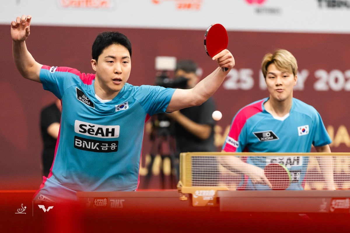 (서울=연합뉴스) 이동칠 기자 = 2025 국제탁구연맹(ITTF) 세계선수권대회(개인전)에서 메달 사냥에 나선 신유빈(대한항공)-유한나(포스코인터내셔널) 조와 임종훈-안재현(이상 한국거래소) 조의 희비가 16강 길목에서 엇갈렸다.