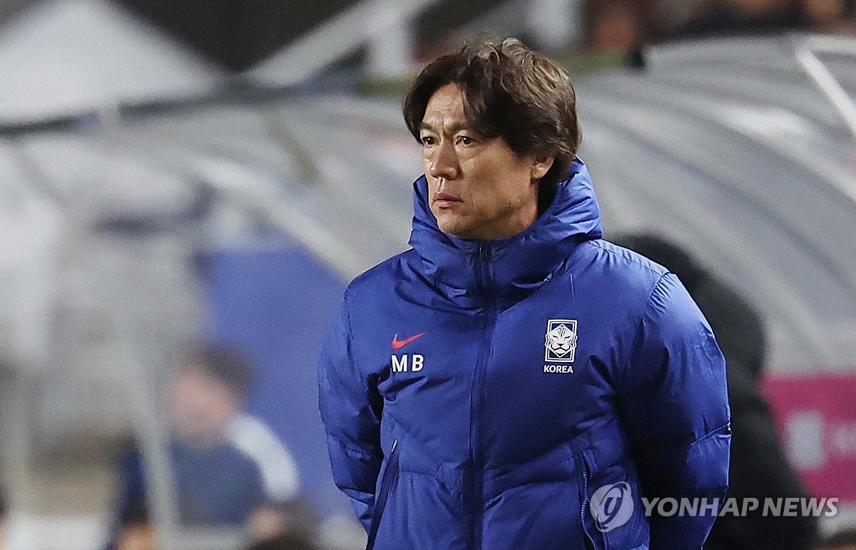 (수원=연합뉴스) 김성민 기자 = 25일 수원월드컵경기장에서 열린 2026 북중미 월드컵 아시아 3차 예선 B조 8차전 대한민국과 요르단의 경기. 홍명보 감독이 경기를 지켜보고 있다. 2025.3.25 ksm7976@yna.co.kr