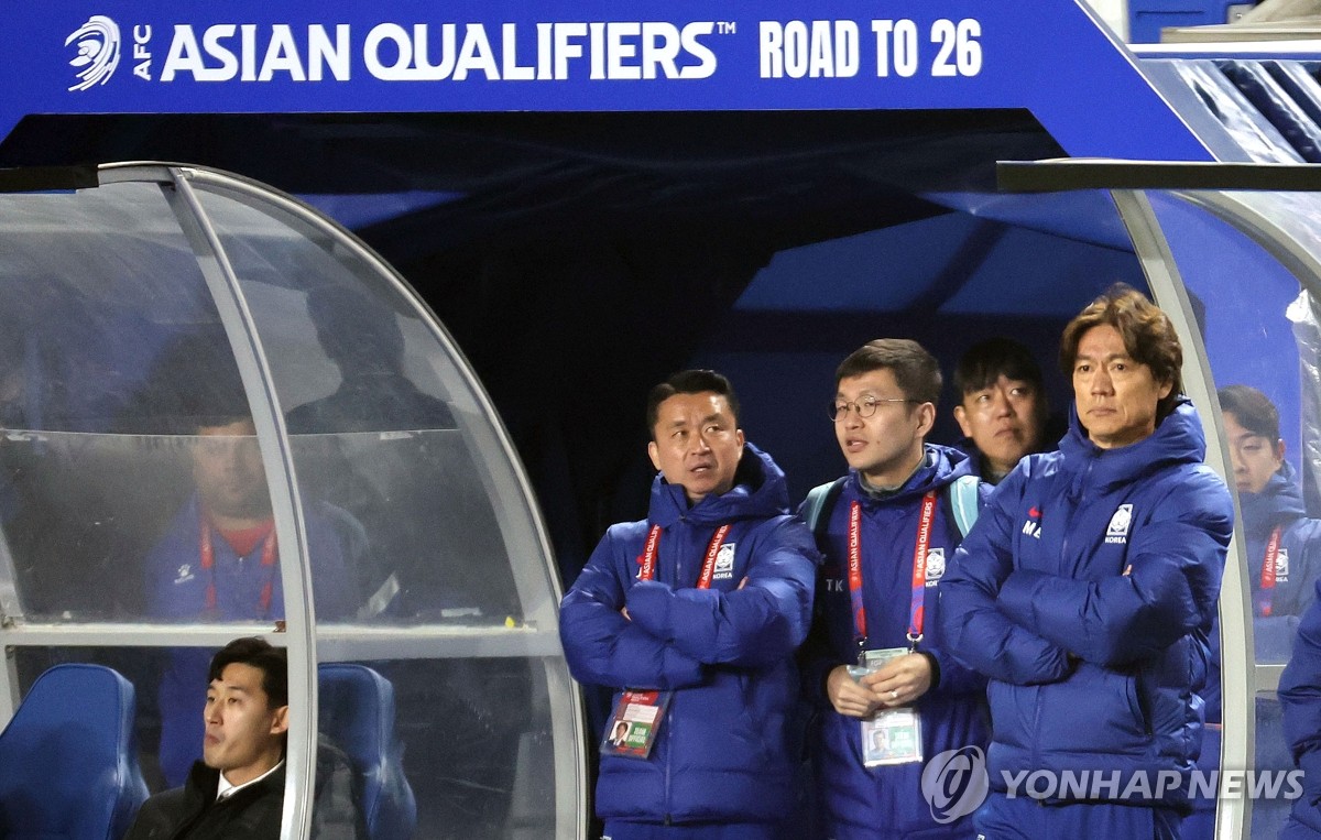 홍명보 감독이 경기를 지켜보고 있다. 2025.3.25 seephoto@yna.co.kr