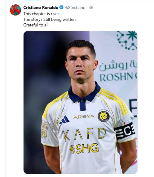 호날두의 글은 알나스르가 알파테와 원정 경기로 치른 2024-2025시즌 사우디 프로리그 최종전이 끝난 뒤 게시됐다.