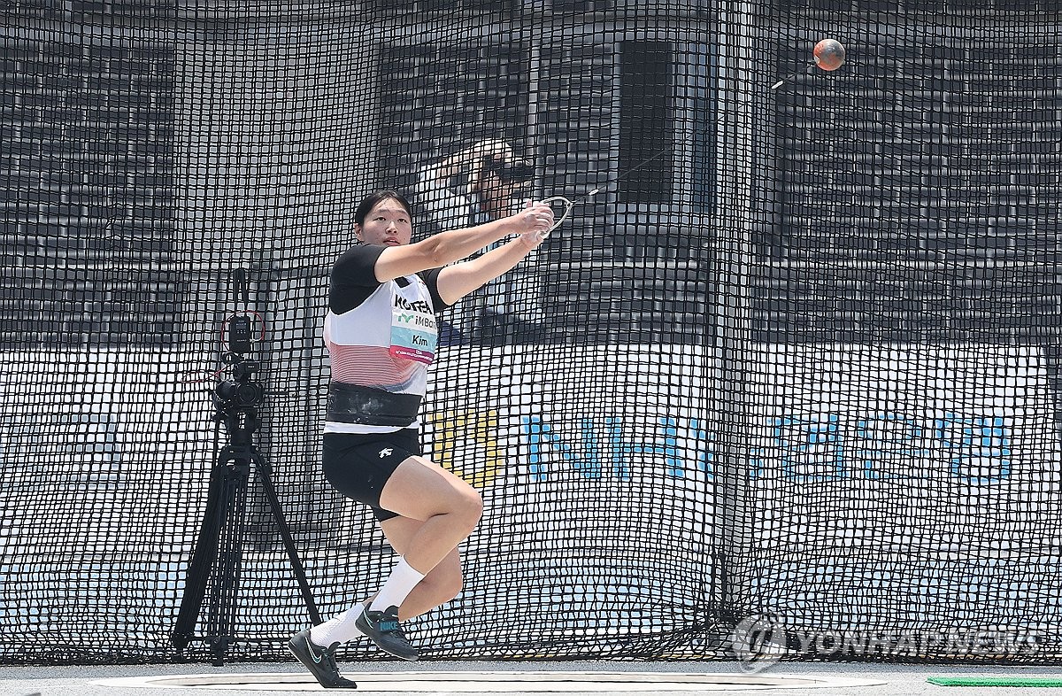(구미=연합뉴스) 윤관식 기자 = 김태희(익산시청)가 27일 경북 구미시민운동장에서 열린 2025 구미 아시아육상선수권대회 여자 해머던지기 결승에서 해머를 던지고 있다. 2025.5.27 psik@yna.co.kr