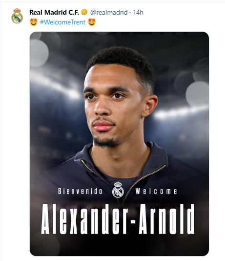 구단은 알렉산더아널드가 6월 15일부터 미국에서 열리는 2025 국제축구연맹(FIFA) 클럽 월드컵에서 레알 마드리드 소속으로 뛰게 된다고 밝혔다.