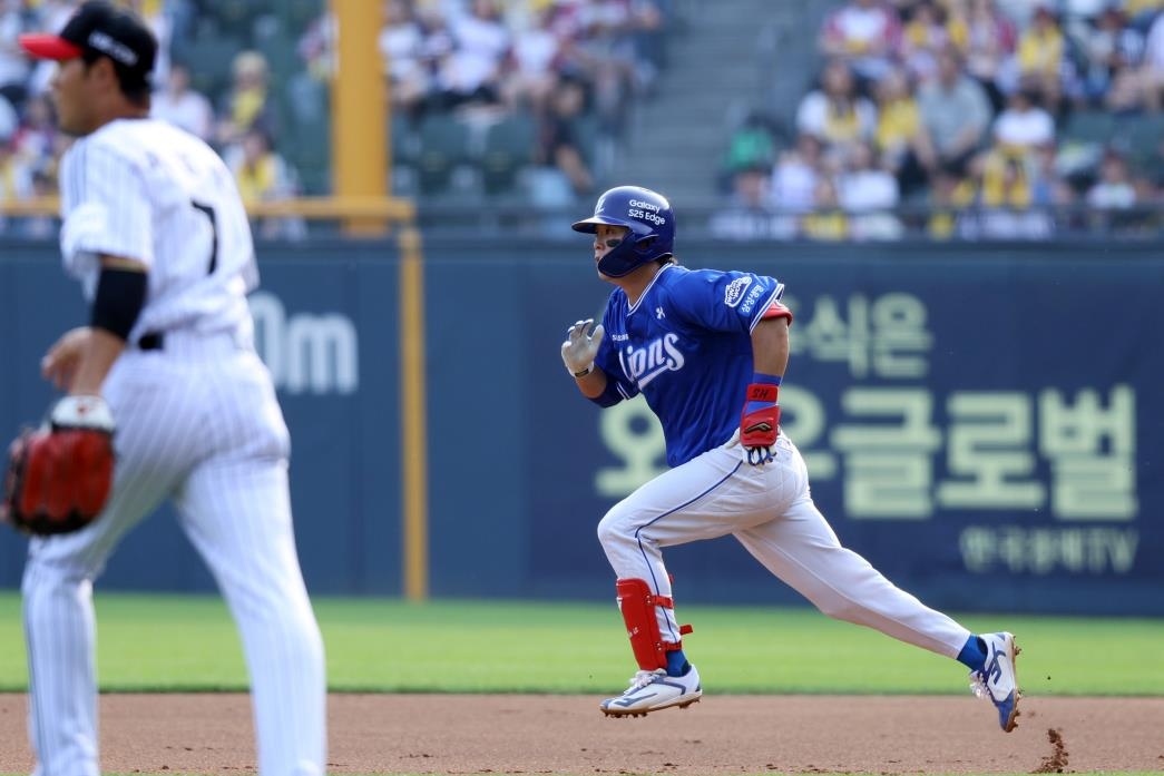 삼성 박승규(오른쪽)가 31일 서울 잠실구장에서 열린 2025 프로야구 LG 트윈스와 경기에서 내달리고 있다. [삼성 라이온즈 제공. 재배포 및 DB 금지]