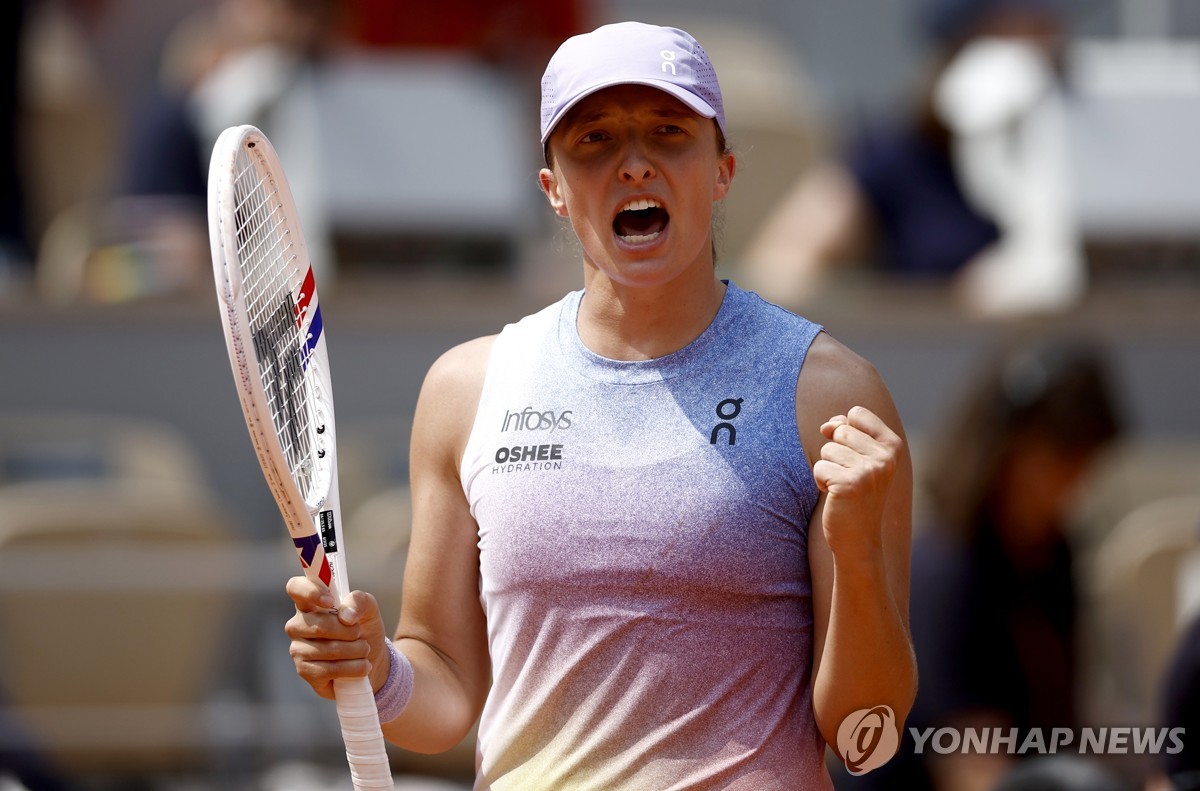 (서울=연합뉴스) 김동찬 기자 = 아리나 사발렌카(1위·벨라루스)와 이가 시비옹테크(5위·폴란드)가 프랑스오픈 테니스 대회(총상금 5천635만2천유로·약 876억7천만원) 여자 단식 4강에서 격돌한다.