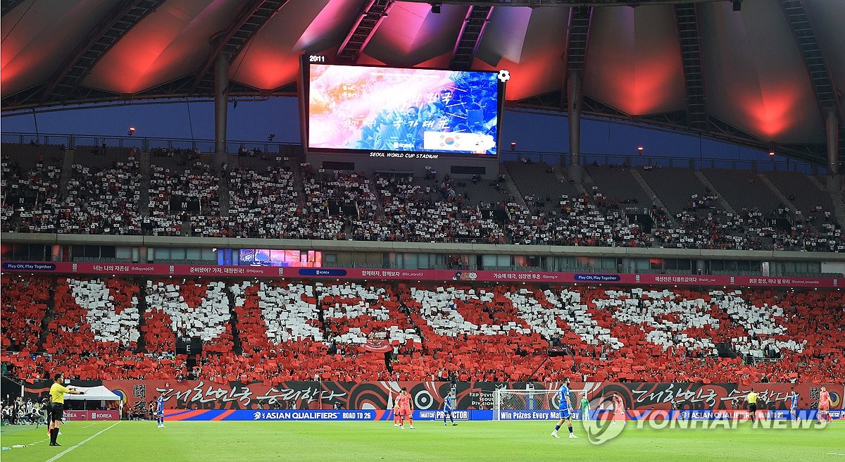 붉은악마 응원단이 'WE 대한'이라고 적힌 카드섹션을 선보이고 있다. 2025.6.10 jjaeck9@yna.co.kr