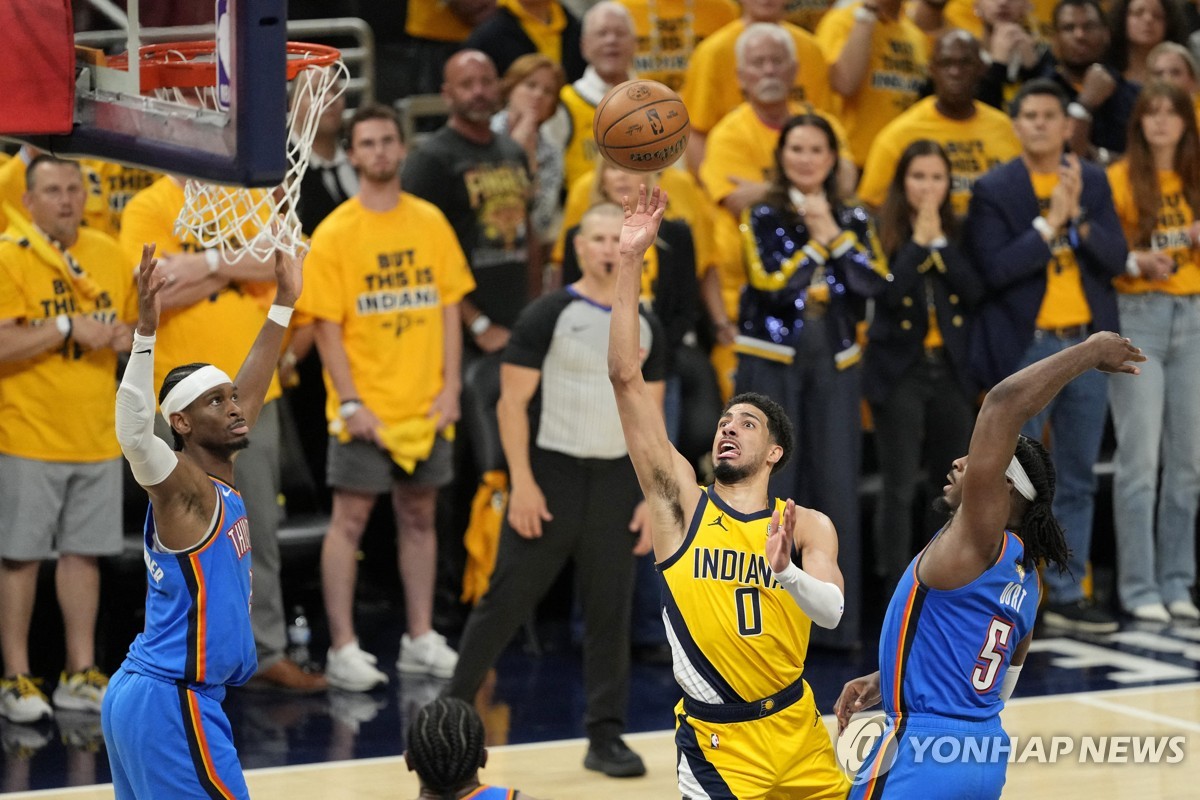 (서울=연합뉴스) 최송아 기자 = 미국프로농구(NBA) 인디애나 페이서스가 오클라호마시티 선더와의 챔피언결정전에서 2승 1패로 한 발 앞서 나갔다.