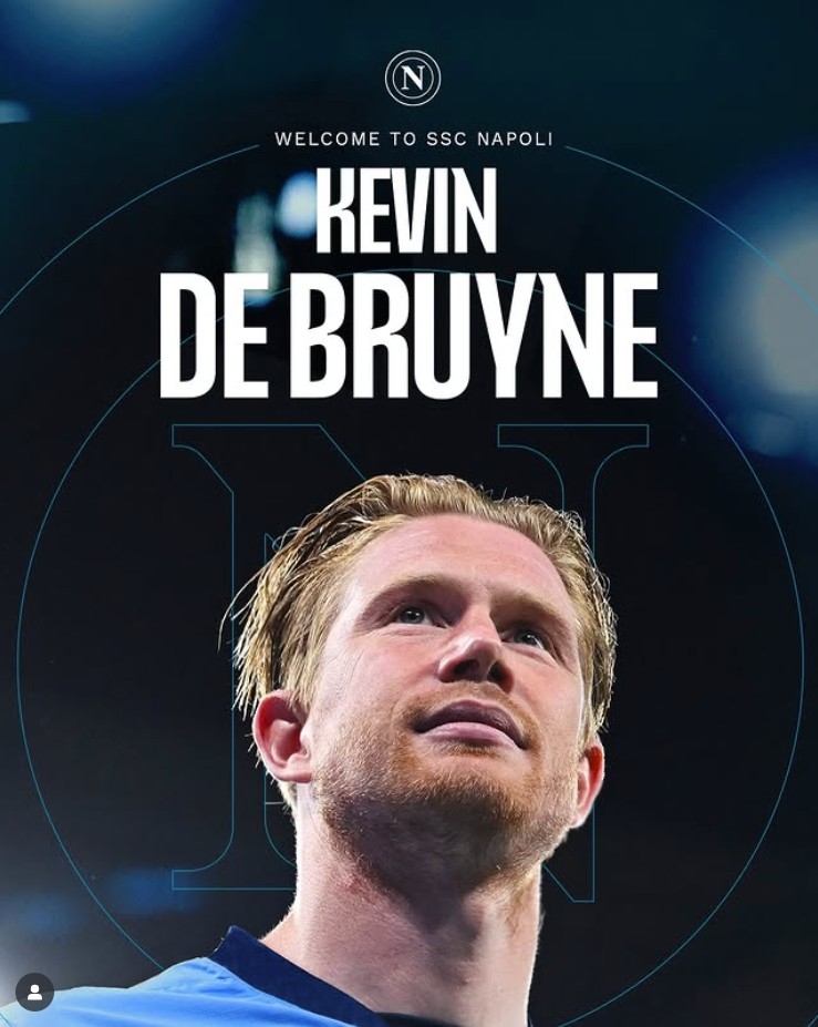 나폴리 구단은 12일(한국시간) 소셜미디어(SNS)를 통해 더브라위너 영입을 발표하며 "더브라위너는 우리 팀의 일원이 된 걸 자랑스러워한다"고 밝혔다.