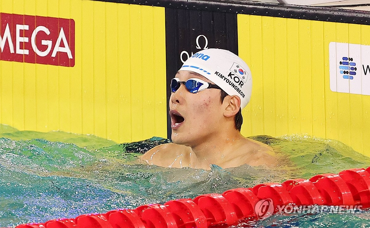 (서울=연합뉴스) 배진남 기자 = 올해 국가대표 선발전 남자 자유형 100m에서 한국 최강 황선우(22)를 제치고 세계수영선수권대회 태극마크를 거머쥐었던 김영범(19·이상 강원특별자치도청)이 이제 한국 기록에도 0.29초 차로 다가섰다.