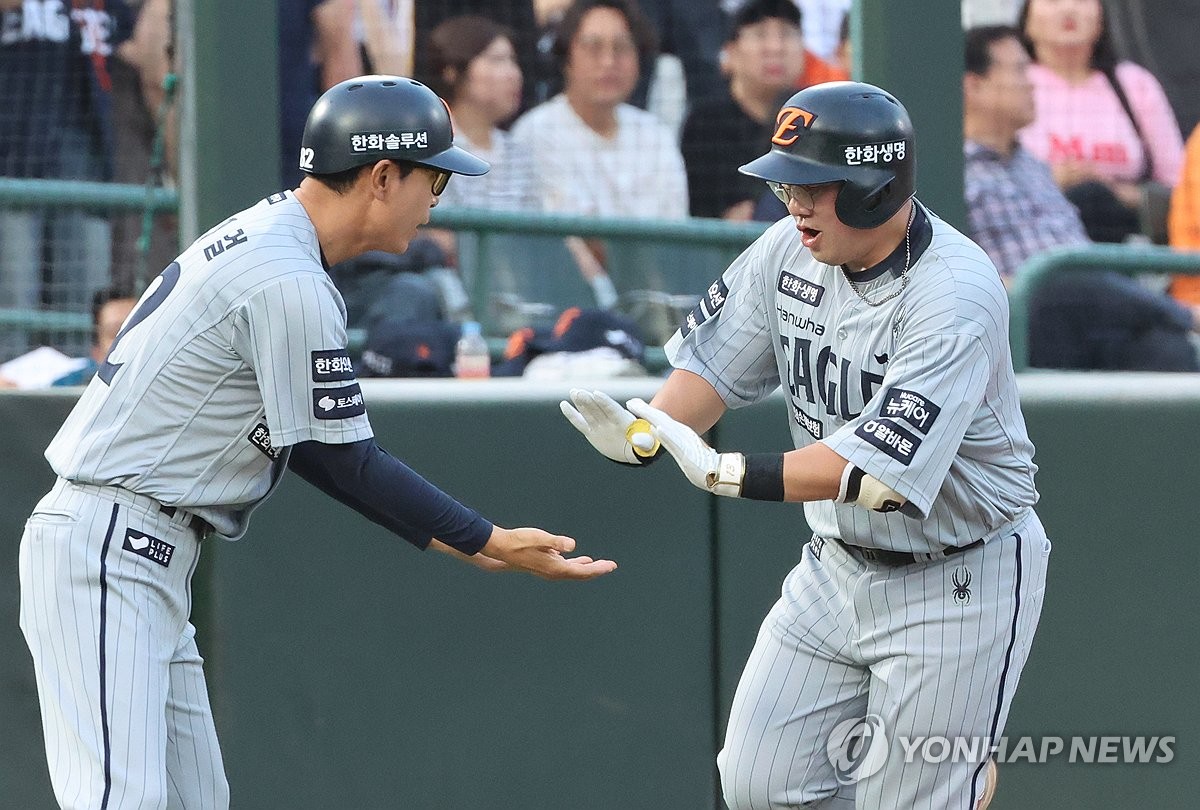 (서울=연합뉴스) 김동찬 기자 = 한화 이글스가 안치홍의 결승 3점 홈런을 앞세워 5연승을 질주하며 단독 1위를 굳게 지켰다.