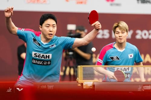 (서울=연합뉴스) 이동칠 기자 = 한국 남자탁구의 '환상 콤비' 임종훈-안재현(이상 한국거래소) 조가 '월드테이블테니스(WTT) 컨텐더 자그레브 2025'에서 2주 연속 우승을 향한 첫 관문을 통과했다.
