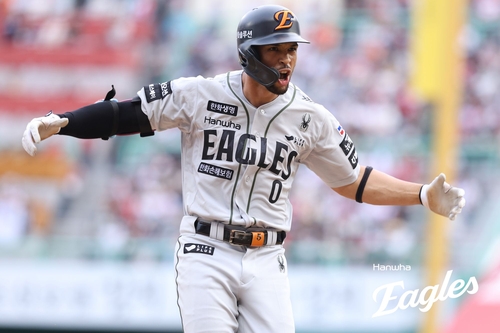 (인천=연합뉴스) 하남직 기자 = 루이스 리베라토(29·한화 이글스)가 포효하며 그라운드를 돌았다.