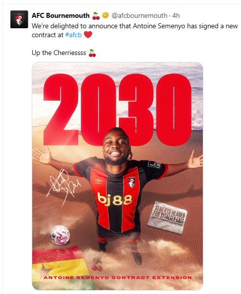 잉글랜드 프로축구 프리미어리그의 본머스는 2일(한국시간) 구단 홈페이지에 "세메뇨와 2030년 여름까지 유효한 새로운 장기 계약을 했다"고 알렸다.